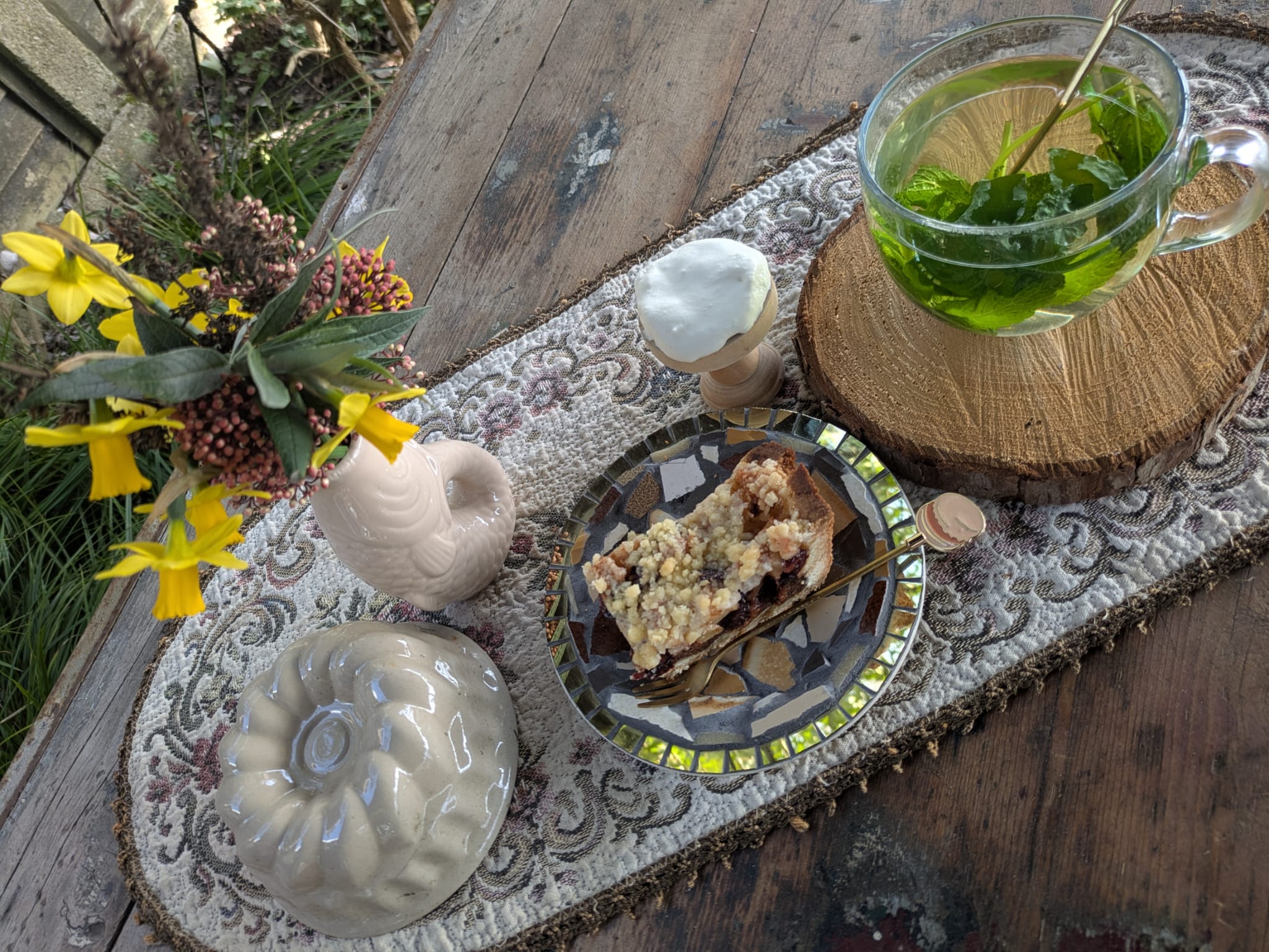 Hier weer een berichtje van Tante Bets. Weer is prachtig en in de tuin loopt weer van alles uit. De hyacint komt in bloei en de narcissen bloeien al. Kortom, ik heb zin om weer te beginnen met de theetuin. Gezellig taarten bakken en mensen ontvangen.