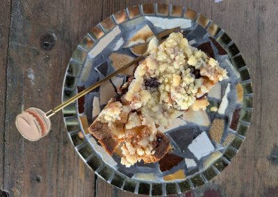 Ik heb zaterdag al iets geprobeerd te bakken en moet zeggen, heerlijk!!! Een appel plaatkoek met cranberry’s en geroosterde amandelspijs. Met natuurlijk verse slagroom. Tja, alleen 1 ding: jullie kunnen de taart nog niet proeven. Jammer. Maarrrrr… zondag 5 april en maandag 6 april ga ik weer open met Pasen en dan zal ik zorgen dat de appel plaatkoek er is. Kunnen jullie komen proeven. Gezellig.